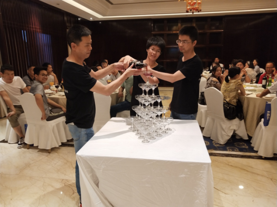 緊接著由金辰軟件合伙人倪小紅女士、李家駒先生和李總一起手捧巨大香檳,向香檳酒塔倒入這15年的美好回憶。晶瑩剔透的香檳酒塔,象征著15年來(lái)與客戶共建的累累碩果,層層塔尖象征著一個(gè)公司的前進(jìn)階梯,大家舉起了手中的酒杯,