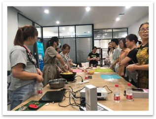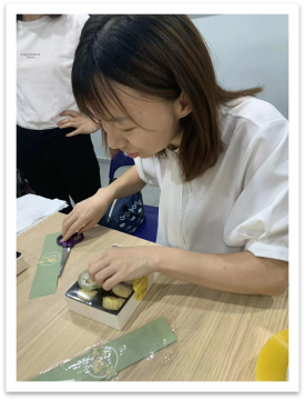 培訓(xùn)內(nèi)容結(jié)束后,我們精心為客戶準(zhǔn)備了手工制作綠豆糕的活動(dòng)。從原料的購買,加工,翻炒,成型以及包裝,都匯聚了我們對(duì)客戶的感恩,為客戶帶去一份美好的體驗(yàn)。但是稍有遺憾的是中間翻炒時(shí)間有點(diǎn)久,一部分客戶沒有繼續(xù)等待就先離開了,沒有品嘗到手工制作的綠豆糕。